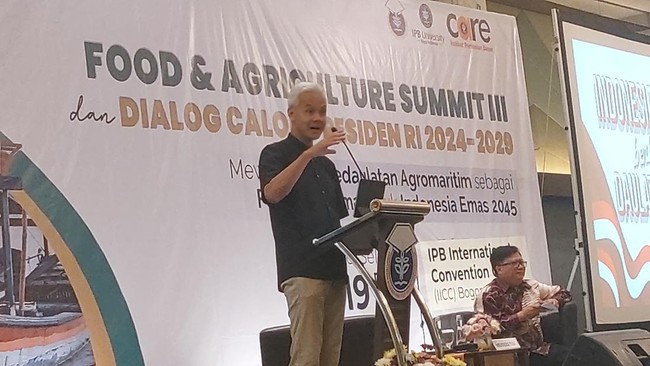 Hal itu disampaikan Ganjar saat menghadiri dialog agromaritim bersama Himpunan Alumni (HA) IPB di IPB International Convention Center (IICC) Bogor, Selasa (19/12/2023). Di tengah pemaparan tentang Agromaritim, Ganjar sempat menyinggung momen saat debat capres pertama soal kelangkaan pupuk di Jawa Tengah.