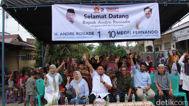 "Kami minta masyarakat jangan tergiur memilih calon yang datang setiap Pemilu saja. Pilih yang benar-benar bekerja untuk masyarakat. Insya Allah kami dari Gerindra sesuai arahan Prabowo tidak seperti itu. Pilih pak Prabowo. Apa gunanya menang di Sumbar tapi kalah di nasional. Kita ingin dukung yang menang," kata Andre.