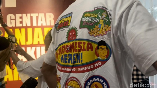 "Dibuatnya sama relawan dan relawannya membuat program-program Ganjar-Mahfud ditempelkan di kaos belakang," kata Ganjar.