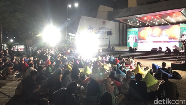 Makin malam, penonton makin ramai. 'Bangku malas' yang disediakan telah dipenuhi oleh penonton yang didominasi oleh milenial dan Gen Z.