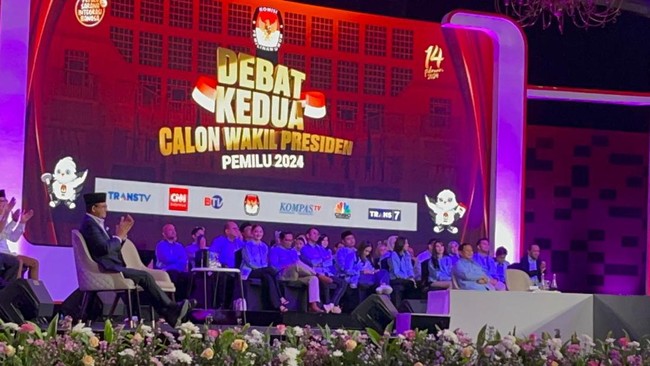 Capres nomor urut 1 Anies Baswedan turut menyimak jawaban-jawaban dari peserta debat cawapres. Ketika mendengarkan jawaban cawapresnya Muhaimin Iskandar atau Cak Imin saat menanggapi cawapres nomor urut 2 Gibran Rakabuming Raka, Anies terlihat tersenyum dan bertepuk tangan.
