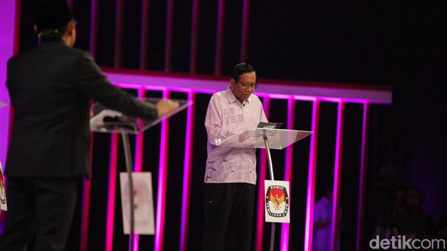 Mahfud menjadi peserta terakhir yang naik ke panggung. Mahfud terlihat berganti pakaian.