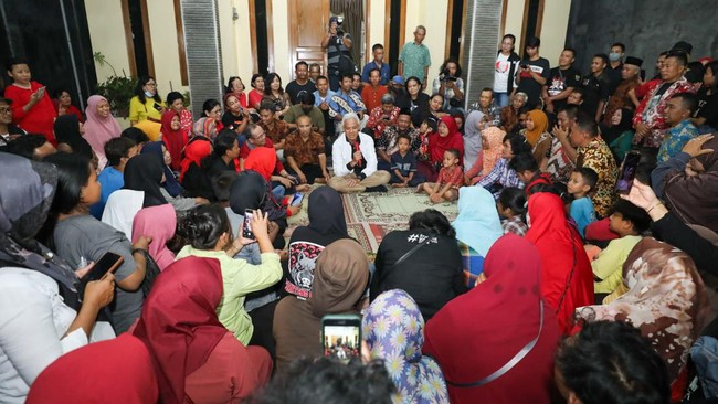 Capres nomor urut 3 Ganjar Pranowo menginap di rumah warga di kawasan Kadipiro, Banjarsari, Surakarta (Solo), Jawa Tengah. Warga pun antusias menyambut kehadiran Ganjar.