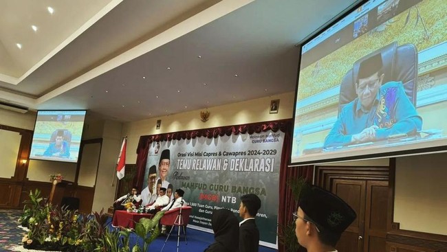 Cawapres nomor urut 3 Mahfud Md batal berkampanye ke Nusa Tenggara Barat (NTB). Mahfud menyapa para relawan melalui video online.