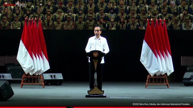 Presiden Joko Widodo (Jokowi) memperingatkan penyelenggara pemilu, khususnya KPU, untuk bekerja sesuai aturan terkait Pemilu 2024. Dia mengingatkan KPU dalam bahaya jika bekerja melenceng dari aturan.