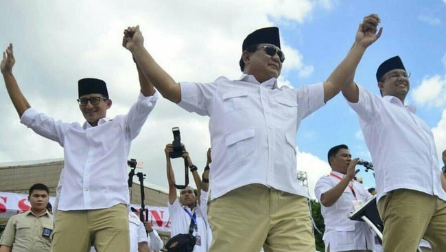 Dalam foto tersebut terlihat Prabowo menggandeng tangan Anies Baswedan dan Sandiaga Uno. Ketiganya memakai baju berwarna putih, celana krem, dan peci. Diketahui, pada Pilgub DKI Jakarta 2017, Prabowo sebagai Ketum Partai Gerindra mengusung pasangan Anies Baswedan dan Sandiaga Uno.