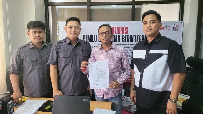 "Kami selaku pelapor merujuk Undang-Undang Nomor 7 Tahun 2017 tentang Pemilu dan peraturan lainnya yang terkait perihal tahapan Pemilu yang saat ini memasuki tahapan masa kampanye dan metode kampanye, serta tata cara pemasangan alat peraga kampanye," imbuhnya.
