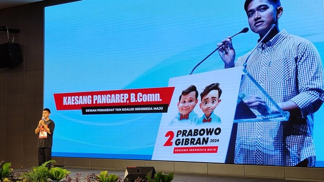 Ketua Umum PSI Kaesang Pangarep meminta pendukung capres-cawapres nomor urut 2, Prabowo Subianto-Gibran Rakabuming Raka, memenangkan pasangan itu dalam satu putaran. Dia punya alasan tersendiri ingin pasangan tersebut menang satu putaran.