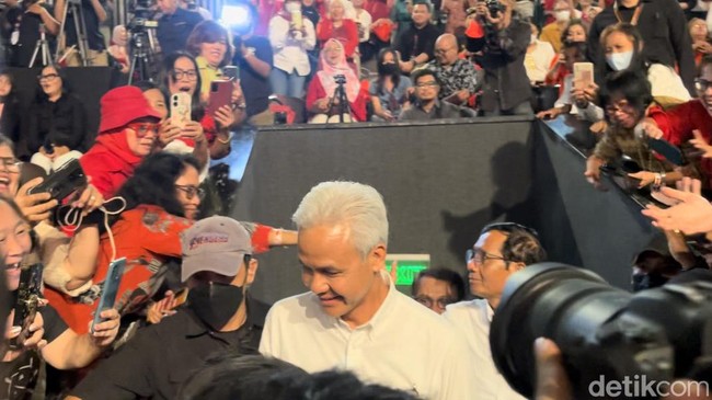 Pantauan detikcom, Rabu (3/1/2024) Ganjar dan Mahfud mulai masuk ke tempat acara pukul 20.24 WIB. Keduanya disambut riuh para hadirin.