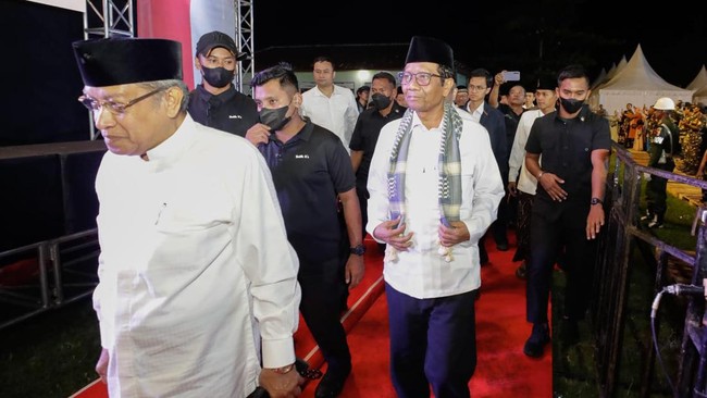 Kemudian Said Aqil mengenalkan sosok Mahfud MD kepada ribuan jemaah selawat yang terus meneriaki nama eks Ketua Mahkamah Konstitusi (MK) tersebut.