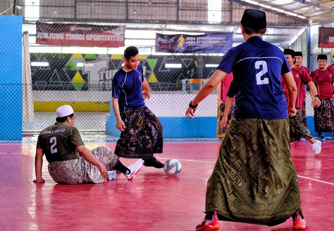 Cawapres nomor urut 2 Gibran Rakabuming Raka bersilaturahmi dengan para gus dan ning dari berbagai pondok pesantren se-Pulau Jawa. Pertemuan berlangsung santai dan didahului dengan bermain futsal bertajuk Fun Futsal Sarungan Bareng Samsul.