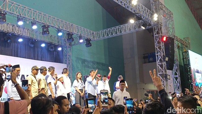 Cawapres nomor urut 2 Gibran Rakabuming menghadiri acara konsolidasi relawan di GOR Bima, Cirebon, Jawa Barat. Dia meminta para relawan untuk terus bekerja keras dan tidak jumawa dengan hasil survei.