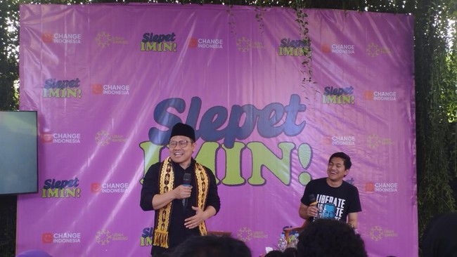 "Untung saya enggak jadi Menhan," kata Cak Imin yang diikuti tawa para hadirin dalam acara 'Slepet Imin' di Kopi Alam, Kota Metro, Lampung, Senin (8/1/2024).