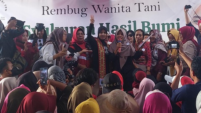 "Seperti sulitnya pasokan pupuk, irigasi air, mahalnya harga sembako, sulitnya biaya sekolah, akses bansos yang timpang, akses kesehatan yang belum merata, dan rendahnya partisipasi perempuan petani dalam pengambilan keputusan," ujar Tino.