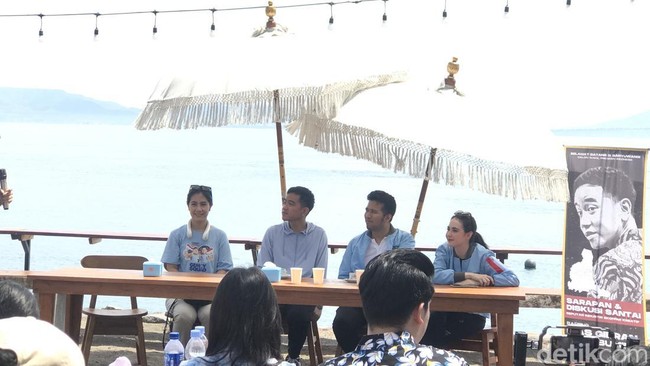 Acara itu digelar di Pantai Boom, Banyuwangi, Jawa Timur, Rabu (10/1/2024). Gibran didampingi jubirnya, Emil Dardak dan Arumi Bachsin. Jubir Tim Kampanye Nasional (TKN) Isyana Bagoes Oka juga hadir di lokasi.
