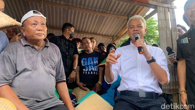 Capres nomor urut 3 Ganjar Pranowo menemui petani bawang merah di Desa Kertabesuki, Wanasari, Kabupaten Brebes, Jawa Tengah. Ganjar mengatakan petani mengeluh soal kelangkaan pupuk subsidi.