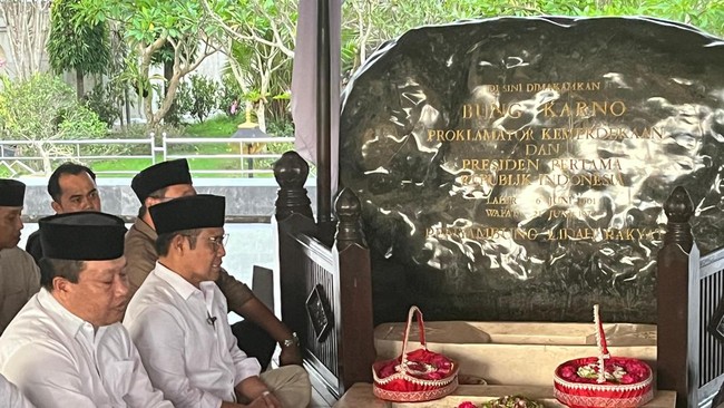 Calon wakil presiden nomor urut 1 Muhaimin Iskandar atau Cak Imin berziarah ke makam Presiden ke-1 RI Sukarno di Blitar. Dia berziarah didampingi Waketum PKB Jazilul Fawaid dan Bupati Blitar Rini Syarifah.