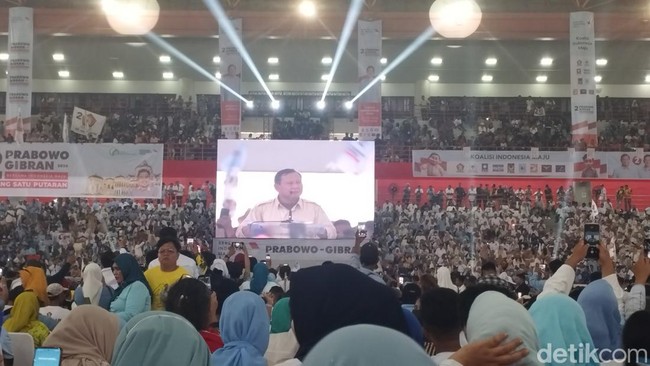 Calon Presiden (Capres) nomor urut 2, Prabowo Subianto, menghadiri acara Konsolidasi Partai Koalisi Indonesia Maju di Medan, Sumatera Utara. Dalam kesempatannya, Prabowo sempat membahas soal nilai yang dia dapatkan saat debat capres pekan lalu.