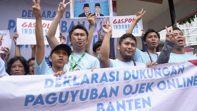 Paguyubuan Ojek online (Ojol) di Banten sepakat mendukung Prabowo Subianto dan Gibran Rakabuming Raka di Pilpres 2024. Para ojol ini bergabung dengan relawan Gaspoll Bro.