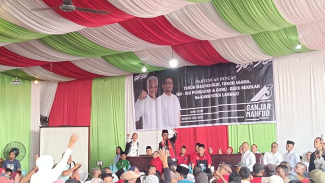 Calon wakil presiden (cawapres) nomor urut 3 Mahfud Md menghadiri pertemuan dengan warga di Kabupaten Langkat, Sumatra Utara (Sumut). Dia bicara tentang penegakan hukum ofensif kepada para koruptor.