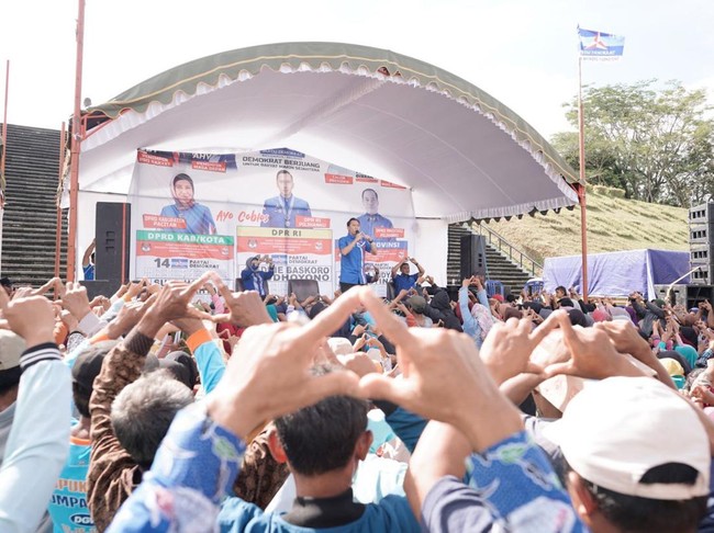 "Untuk itu, pesan ibas, datang ke TPS tanggal 14 Februari nggih, bawa KTP dan kerta pemilihnya, datang ke TPS masing-masing. Tolong berikan dukungan kepada partai apa?" tanya Ibas.