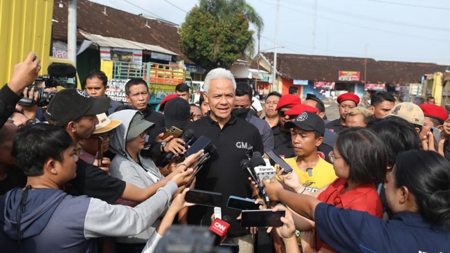 Capres nomor urut 3, Ganjar Pranowo, berkunjung ke pabrik tembakau PT Sari Tembakau Harum, Kendal, Jawa Tengah (Jateng). Ganjar mengapresiasi perusahaan ini karena banyak memberdayakan perempuan hingga penyandang disabilitas untuk bekerja.