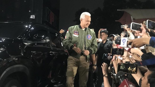 Pantauan detikcom di lokasi, Rabu (17/1/2023), Ganjar-Mahfud tiba sekitar pukul 19.28 WIB. Ganjar dan Mahfud langsung memasuki gedung.