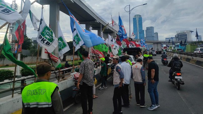 "Diamankan beberapa bendera parpol oleh perwakilan parpol yang mengganggu lalu lintas di sepanjang flyover Kuningan Barat," ujar Kapolsek Mampang, Kompol David Y Kanitero, dalam keterangannya.