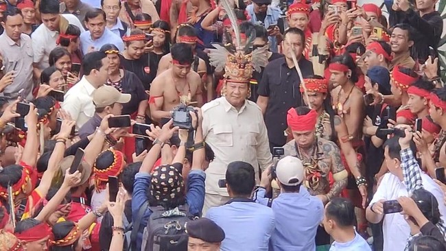 Capres nomor urut 2, Prabowo Subianto berkampanye di Pontianak, Kalimantan Barat. Memulai lawatannya di Bumi Khatulistiwa, Prabowo bersilaturahmi dengan masyarakat adat, Pasukan Merah Tariu Borneo Bangkule Rajakng (TBBR).