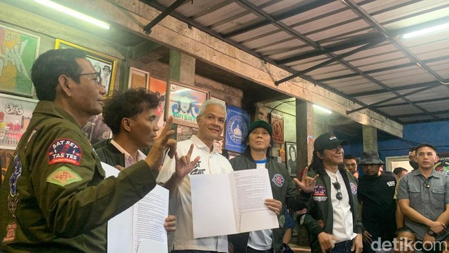 "Sebenarnya kami sudah berbincang beberapa kali tapi kami tahu bahwa ada sesuatu yang harus kami bicarakan dengan penuh rasa cinta dan hati-hati. Dan hari ini kami diterima oleh kawan-kawan dari Slank cukup komplit, jaketnya baru ya. Dan tadi sudah menyampaikan banyak pesan di poster Slank mendukung Ganjar-Mahfud," kata Ganjar.