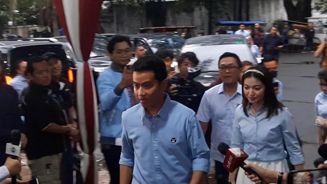 Gibran hanya tersenyum saat tiba. Gibran langsung masuk ke rumah Prabowo.
