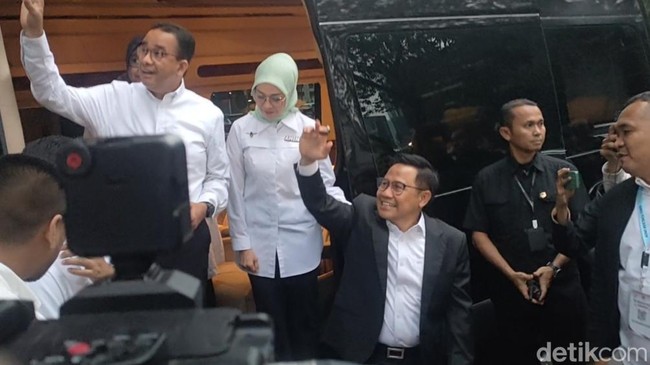 Pantauan detikcom di sekitar Cafe On3 Senayan, Jakarta Pusat, Minggu (21/1/2024), Cak Imin yang sudah hadir terlebih dahulu menunggu kedatangan Anies di dalam mobil. Sekitar pukul 17.55 WIB Anies bersama rombongan hadir ke lokasi.