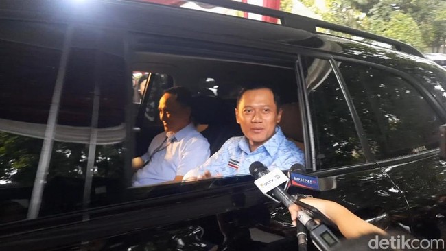Pantauan detikcom di Kertanegara, Jakarta Selatan, Minggu (21/1/2024), AHY tiba sekitar pukul 17.35 WIB. AHY nampak mengenakan kemeja corak bernuansa biru muda.