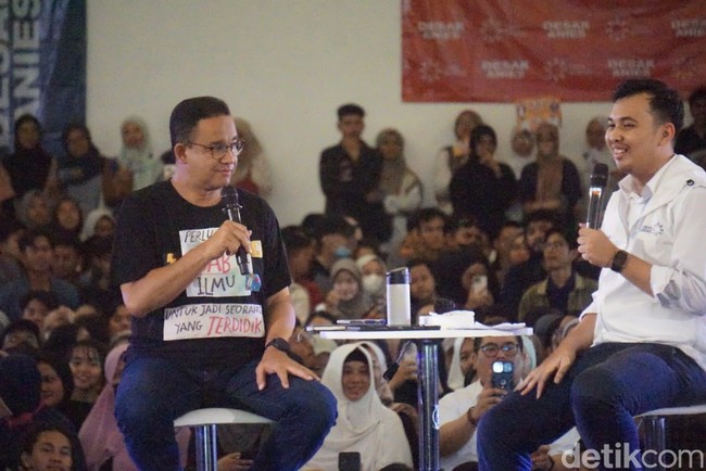 "Oh nggak, ini pakainya tumbler ini, Mas. Ojo mancing-mancing, Mas," ujar Anies di Rocket Convention Hall, Sleman, Daerah Istimewa Yogyakarta (DIY), Selasa (23/1/2024).