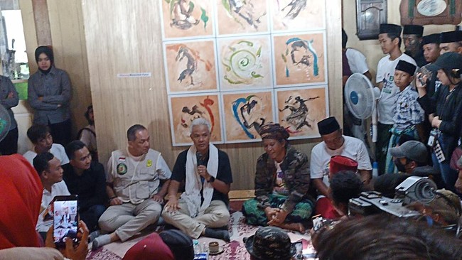 Calon Presiden nomor urut 3 Ganjar Pranowo berkunjung ke Pesantren dan Rumah Kebudayaan Wongsorogo di Desa Sidorejo, Kendal, Jawa Tengah. Ganjar berbicara pentingnya mempertahankan kebudayaan untuk menjaga kelestarian budaya Indonesia dari budaya asing.
