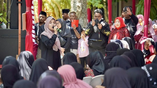 "Apakah pemimpin itu bisa kita titipi permasalahan yang ada di Indonesia untuk bisa dituntaskan, bagaimana masa depan anak-anak kita? Jadi kalau ibu-ibu ini tadi sudah dijelaskan cara singkat oleh Mas Agus bahwa kalau Mas Ganjar dan Pak Mahfud itu programnya satu keluarga miskin satu sarjana," kata Atikoh.