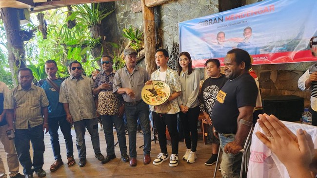 Gibran juga diberi cenderamata dari kelompok disabilitas sebagai kenang-kenangan dari Papua. Gibran terlihat didampingi oleh istrinya, Selvi Ananda, Menteri Investasi/BKPM Bahlil Lahadalia, Wakil Sekretaris TKN Prabowo-Gibran, Aminudin Ma'ruf dan jajaran TKN lainnya.