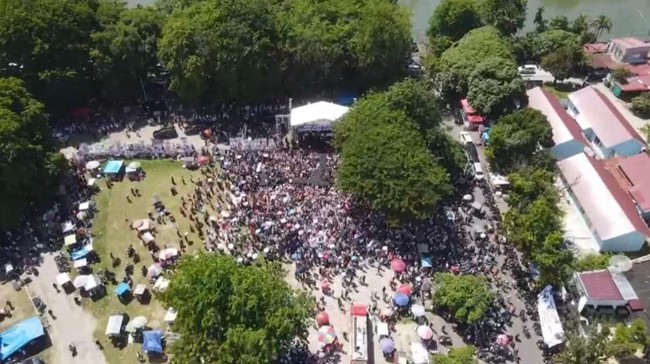"Jadi ketika kita di puncak acara sekitar jam 11 sampai jam 12 itu alhamdulillah itu massa membeludak ramai, kemudian acara penuh dan di luar dugaan kita kan kita alhamdulillah antusias masyarakat luar biasa sampai tempatnya membeludak," kata dia.