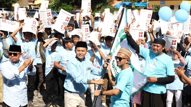 Solidaritas Ulama Muda Jokowi (Samawi) kembali menggelar apel dan pelepasan relawan canvasing di Lapangan Gedung Bagas Raya, Cirebon, Jawa Barat. Mereka akan memastikan kemenangan Prabowo-Gibran di Cirebon dengan mengajak warga beri dukungan.
