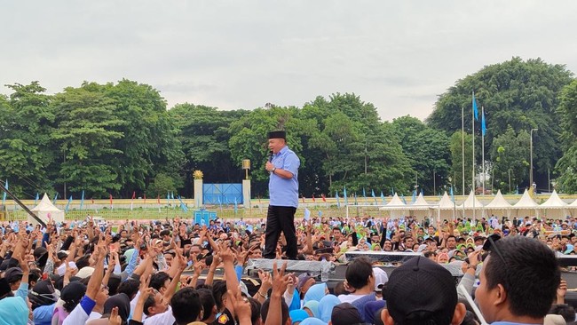 Masih pakai bahasa Jawa, Dudung mengatakan masyarakat agar tidak terpengaruh dengan calon lain. Pilihan di Banten katanya adalah dukungan ke Prabowo Subianto sebagai calon presiden.