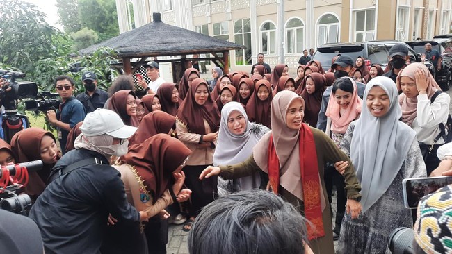 Pantauan detikcom di lokasi, Sabtu (27/1/2024), Atikoh disambut meriah oleh para santri di Ponpes Darun. Satu persatu santri bersalaman dengan Atikoh.