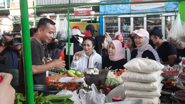Istri Capres nomor urut 3, Ganjar Pranowo, Siti Atikoh Supriyanti melakukan blusukan ke pasar Oro Oro Dowo, Kecamatan Klojen, Kota Malang, Jawa Timur. Atikoh didampingi Krisdayanti yang kembali maju sebagai caleg DPR dapil Jawa Timur V Malang Raya saat blusukan ke pasar hingga berolahraga di CFD.