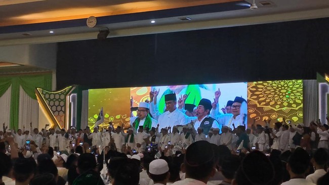 Deklarasi berlangsung di Gedung Adi Poday, Sumenep, Jawa Timur, Rabu (31/1/2024). Deklarasi ini dihadiri langsung oleh Anies dan Cak Imin.