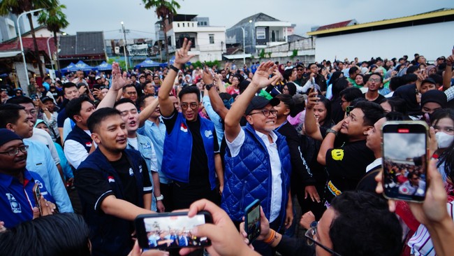 Sesampainya di tempat acara, Zulhas langsung berjoget bersama anak-anak muda yang hadir. Meski hujan mengguyur, Zulhas tetap semangat dan bersenang-senang dengan anak-anak muda tersebut.