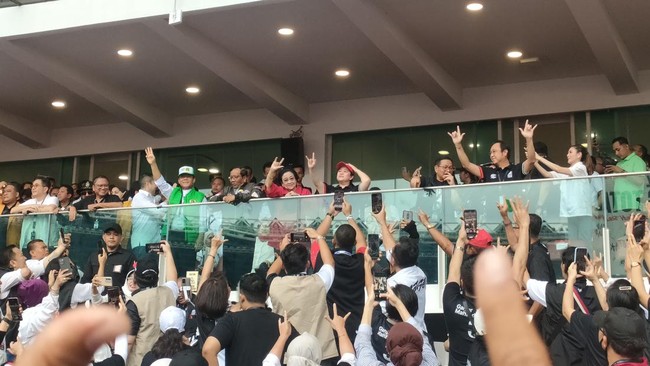 Megawati tampak menyapa dan menyalami petinggi partai berlambang banteng moncong putih itu. Presiden RI ke-5 ini juga tampak melempar senyumnya ke sejumlah pendukung Ganjar-Mahfud yang telah menunggu di pintu masuk VIP Barat Stadion Utama Gelora Bung Karno.