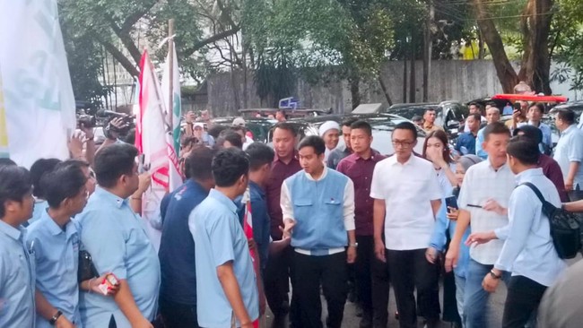 Pantauan detikcom di lokasi, Minggu (4/2/2024), Gibran tiba sekitar pukul 18.11 WIB. Dia ditemani sang istri, Selvi Ananda.