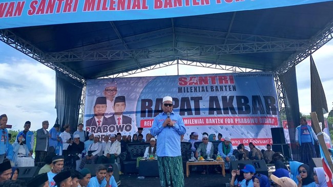 Kiai dan santri yang mendukung Capres-Cawapres nomor urut 2 Prabowo Subianto-Gibran Rakabuming Raka di Banten menyerukan agar Pilpres 2024 berjalan satu putaran. Mereka mengimbau Pemilu tak diisi oleh caci maki.