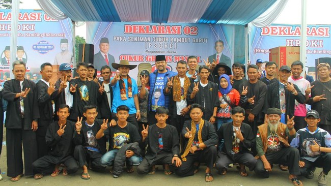 Ribuan masyarakat Kabupaten Garut deklarasikan dukungan kepada Prabowo Subianto-Gibran Rakabuming Raka. Dukungan itu datang dari Himpunan Peternak Domba dan Kambing Indonesia (HPDKI), Seniman Cukur Rambut Garut (PSCRG), Kelompok Tani, komunitas senam dan beberapa komunitas lainnya.