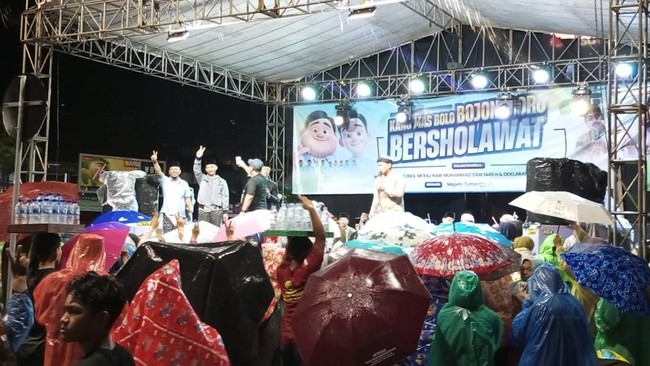 "Meskipun hujan alhamdulillah masyarakat tetap antusias dan tidak mau berteduh dan tetap di lokasi kegiatan dan juga mengikuti lantunan shalawat dan Deklarasi," kata Luky.