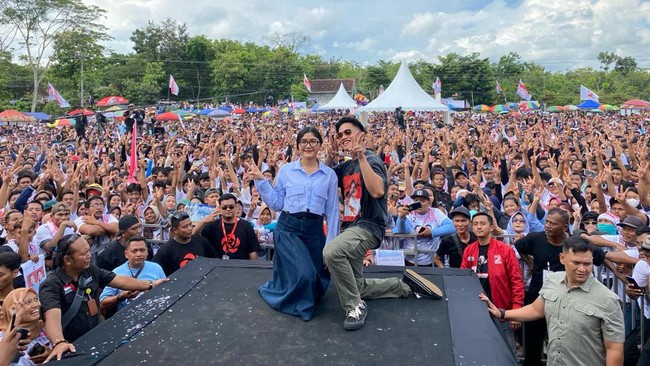 Ketua Umum (Ketum) Partai Solidaritas Indonesia (PSI), Kaesang Pangarep, menghadiri acara kampanye di Wonogiri, Jawa Tengah. Ia pun disambut dengan banyaknya warga yang memadati lokasi kampanye.